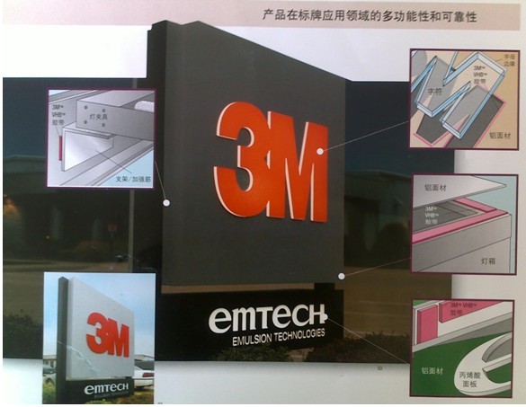 3M VHB雙面膠帶能夠取代鉚釘,在告白業利用普遍,它具備高耐候性, 高強度、雅觀的特色,遭到泛博客戶的喜愛。